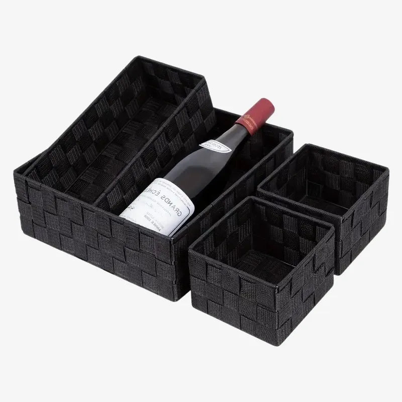 Le BlackWeave Set est l’allié parfait pour ceux qui recherchent un rangement à la fois chic et fonctionnel. Son design sophistiqué en fibres noires tressées apporte une touche de modernité à votre intérieur, tout en gardant vos affaires parfaitement organisées.