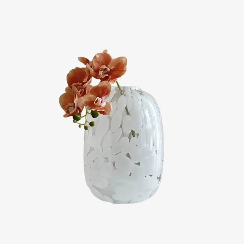 Chaque vase est fabriqué à la main en verre soufflé, ce qui lui confère un caractère artistique et authentique. Son motif marbré unique en fait une pièce exclusive, au charme intemporel, parfaite pour sublimer votre décoration.