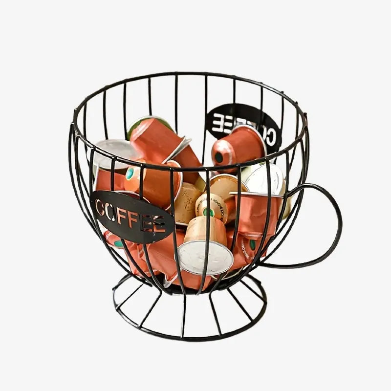 Fabriqué en métal noir de haute qualité, CupCoffee résiste à l’humidité, aux chocs et à l’usage quotidien. Sa structure filaire permet une circulation d’air optimale, évitant l’accumulation de poussière et conservant vos capsules en parfait état.