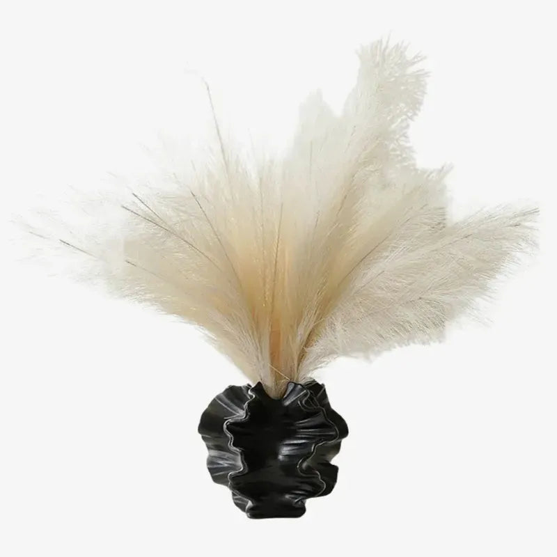 Le vase Ébène Ondulée se distingue par sa teinte noire intense et ses courbes fluides, offrant une allure à la fois dramatique et sophistiquée. Véritable objet d’art, il devient instantanément le point focal de votre décoration intérieure, ajoutant profondeur et élégance à n’importe quel espace.