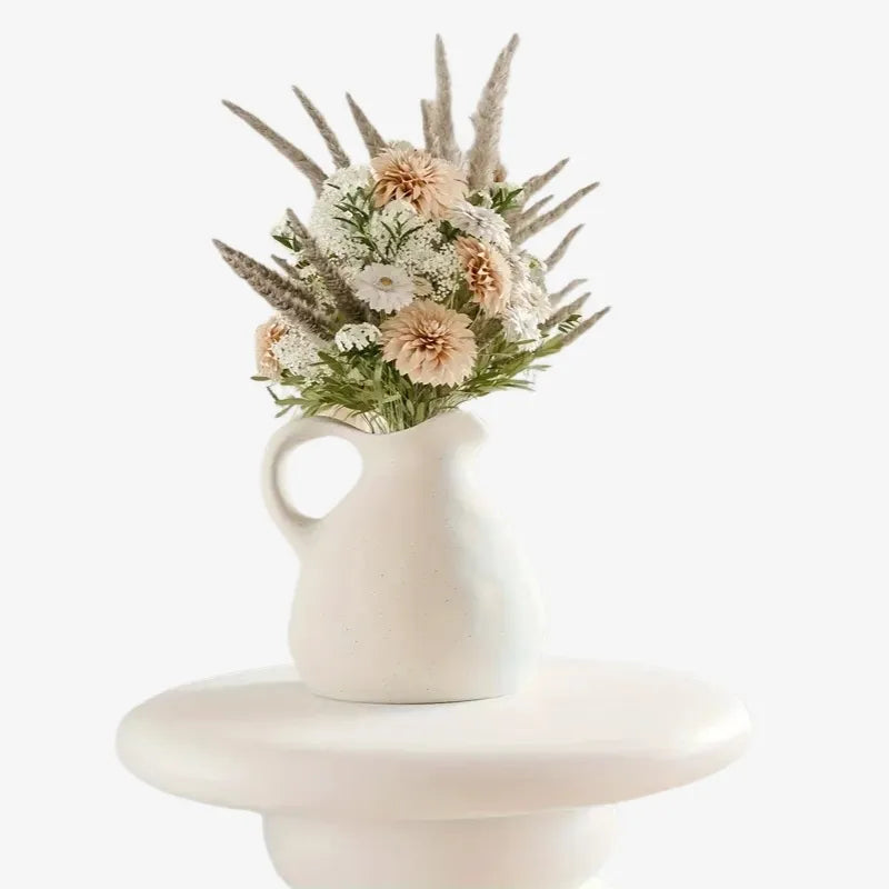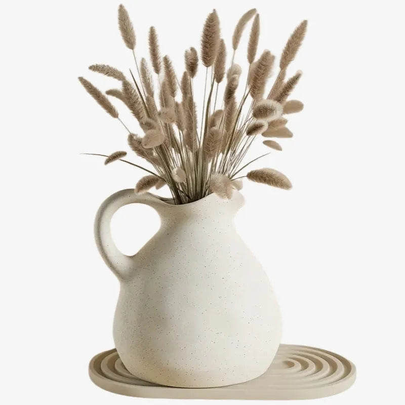 Fabriqué en céramique mate légèrement texturée, ce vase séduit par sa finition douce et élégante. Sa couleur neutre lui permet de s’harmoniser facilement avec tous les styles de décoration, du scandinave au rustique chic, tout en offrant une présence visuelle apaisante.