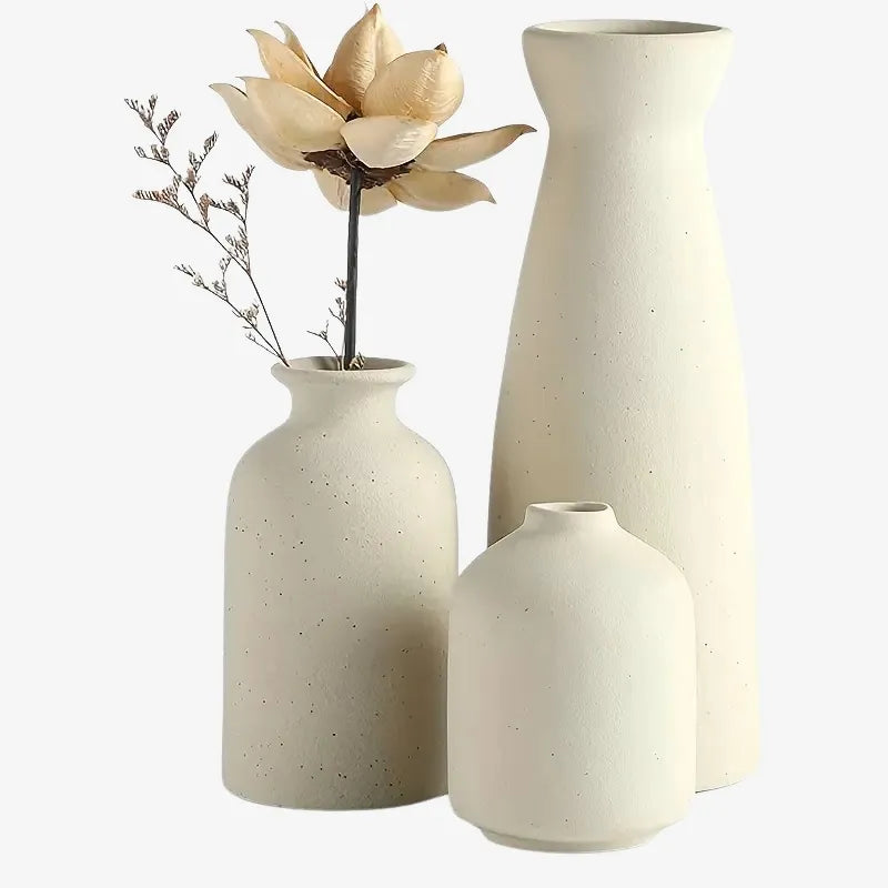 L’ensemble de vases Harmonie Naturelle séduit par ses lignes épurées et ses formes douces. Sa finition mate légèrement mouchetée lui confère un aspect artisanal et authentique, idéal pour une décoration bohème, scandinave ou contemporaine.