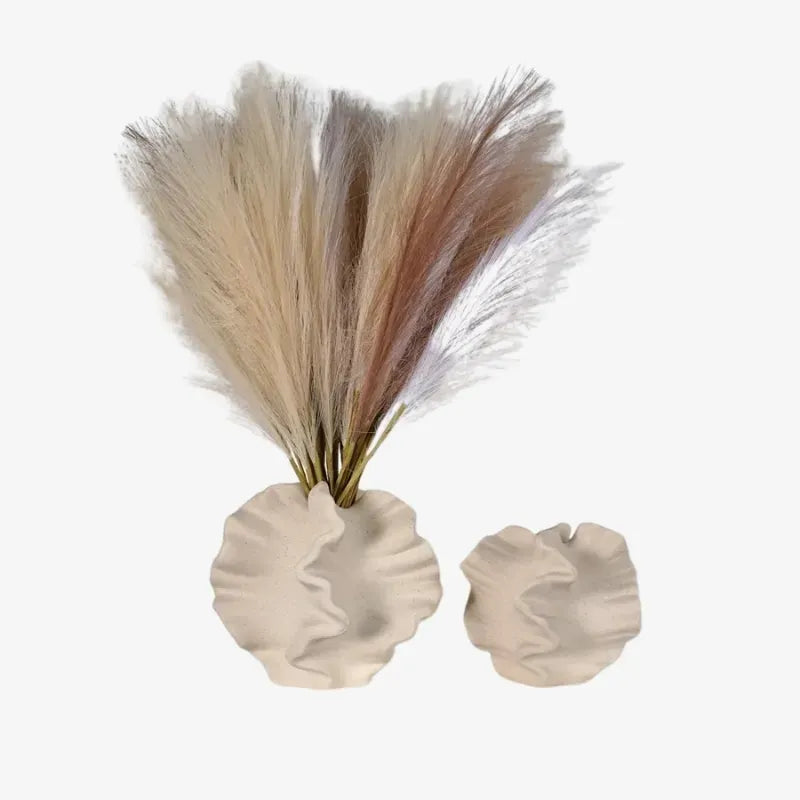 Inspiré par la nature, ce vase souligne les textures et les nuances des fleurs séchées, des pampas ou des branches décoratives. Il crée une ambiance douce, chaleureuse et apaisante dans votre espace de vie.