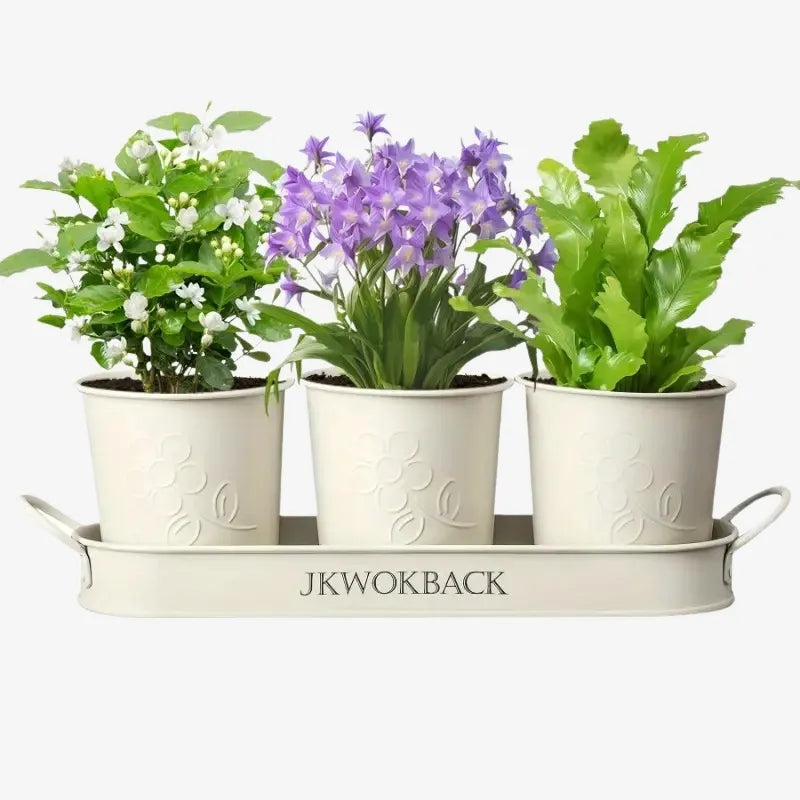 Parfait pour accueillir des plantes aromatiques, fleurs colorées ou petites plantes vertes, ce trio met en valeur votre végétation avec élégance. Le plateau permet de regrouper les pots en un seul ensemble décoratif, créant une composition équilibrée pour votre salon, cuisine, balcon ou bureau.